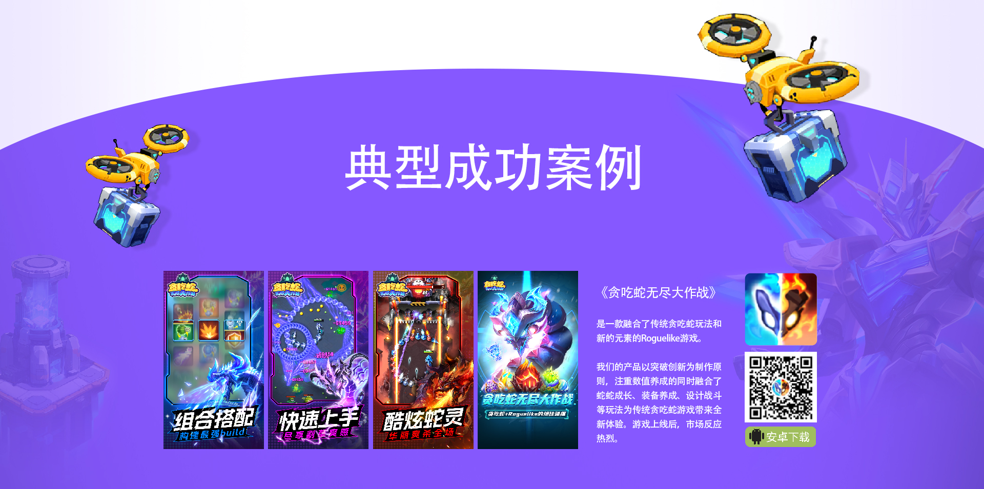 我们的产品以突破创新为制作原则,注重数值养成的同时融合了蛇蛇成长、装备养成、射击战斗等玩法,为传统贪吃蛇游戏带来全新体验。游戏上线后,市场反应热烈。